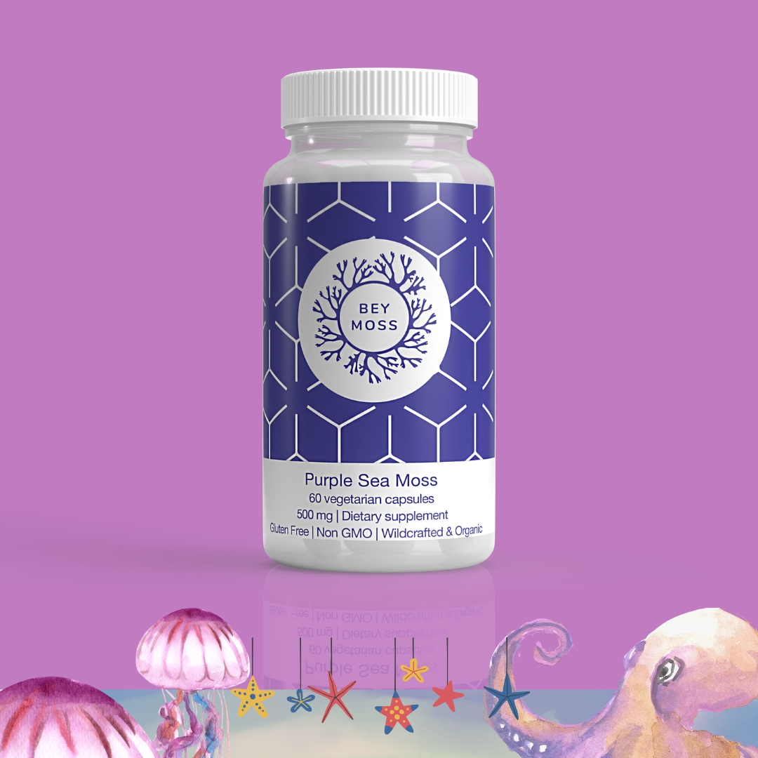 Purple Sea Moss Capsules deliver the same mineral-rich sea moss as the powder, but in a pre-measured, easy-to-swallow form. Perfect for those who prefer a no-mess, on-the-go solution.
